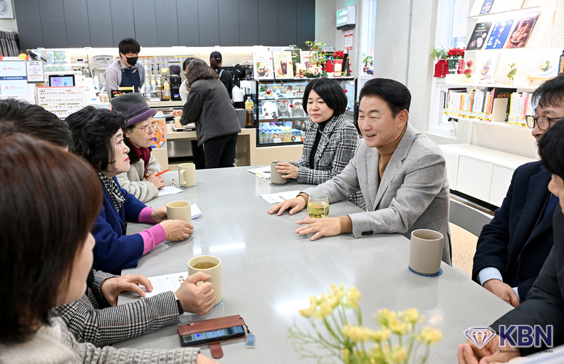 ▶사진 설명 2~3번: 김동근 시장이 12월 11일 의정부1동 주민센터 1층에 마련된 공유공간에서 주민들과 소통하고 있다.