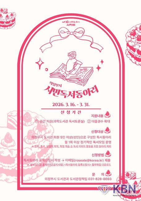 KBN 한국벤처연합뉴스 김만일 기자 | 의정부시는 독서공동체의 자발적 참여를 촉진하고 독서 문화의 기반을 마련하기 위해 ‘2026년 시민 독서동아리’를 운영한다.