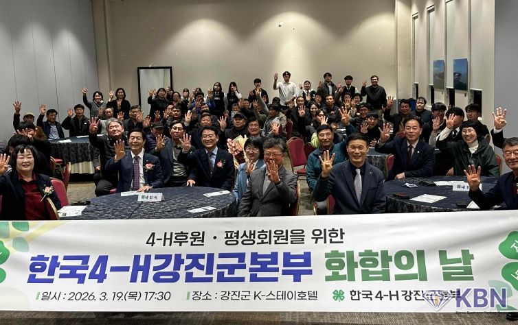 KBN 한국벤처연합뉴스 박종배 기자 | 한국4-H강진군본부(회장 윤윤근)가 지난 19일 강진 K-스테이호텔에서 선후배 회원과 평생회원, 후원회원이 함께하는 ‘2026 화합의 날’ 행사를 개최했다. 이번 행사는 한국4-H강진군본부 회원들이 한자리에 모여 그동안의 활동을 돌아보고 회원 간 화합과 결속을 다지기 위해 마련됐다.