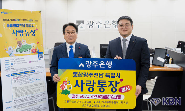 광주은행은 29일 광주광역시와 전남도의 행정 통합을 응원하고 지역 상생 협력 동참을 위한 '통합광주전남 특별시 사랑통장' 금융상품을 출시했다.