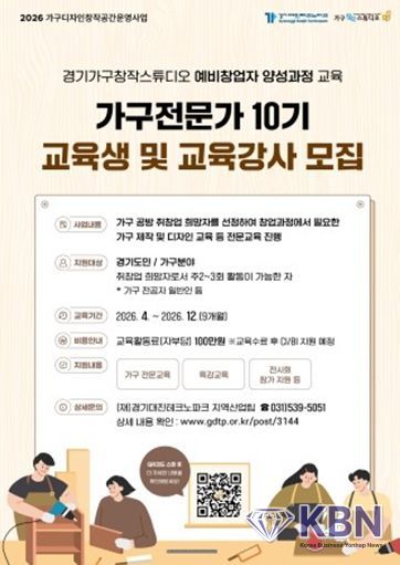 KBN 한국벤처연합뉴스 구일암 기자 | 경기대진테크노파크는 가구디자인창작공간운영사업을 통해 지역 가구 산업 활성화와 창업 기반 조성에 성과를 거두고 있다고 밝혔다.