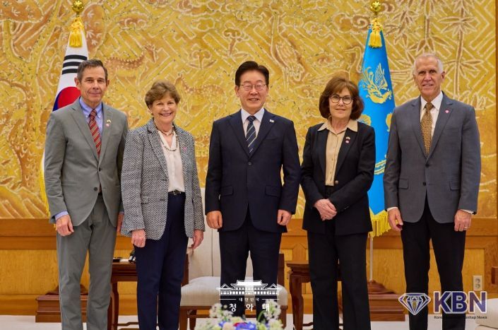 KBN 한국벤처연합뉴스 구일암 기자 | 이재명 대통령은 4월 2일 오후 청와대에서 진 섀힌(Jeanne Shaheen) 상원 외교위원회 간사 등 공화·민주 양당 의원으로 구성된 미국 상원의원 대표단을 접견했다. 이 대통령과 미 대표단은 한미동맹 및 한반도 문제를 비롯해 중동 전쟁의 안보적·경제적 파장과 대응 방안에 대해 심도 있는 의견을 교환하고, 향후 경제적 여파 대응 과정에서 한미가 긴밀히 소통해 나가는 것이 중요하다는 점에 뜻을 같이 했다.