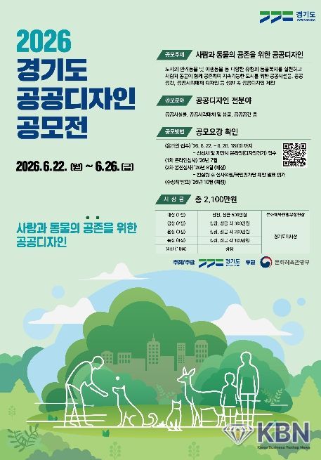 KBN 한국벤처연합뉴스 구일암 기자 | 경기도가 ‘사람과 동물의 공존을 위한 공공디자인’이란 주제로 제20회 ‘2026년 경기도 공공디자인 공모전’을 6월 22일부터 26일까지 개최한다.