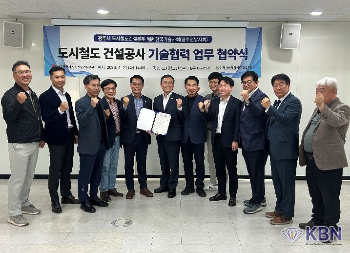 KBN 한국벤처연합뉴스 구일암 기자 | 광주광역시 도시철도건설본부는 21일 본부 8층 대회의실에서 한국기술사회 광주·전남지회와 ‘광주시 도시철도 2호선 건설공사 기술협력 업무협약’을 체결했다.