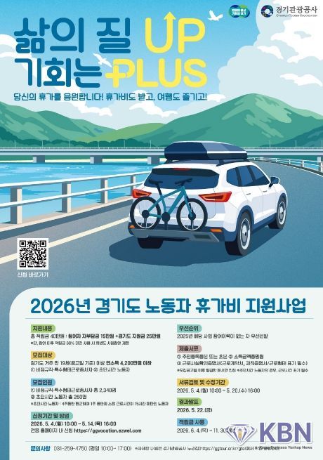KBN 한국벤처연합뉴스 구일암 기자 | 경기도가 경제적 부담으로 휴식을 포기했던 비정규직과 특수형태근로종사자에게 휴가비를 지원하는 ‘취약노동자 휴가비 지원사업’ 참여자를 5월 4일부터 14일까지 모집한다.