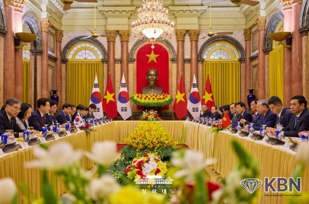 KBN 한국벤처연합뉴스 구일암 기자 | 베트남을 국빈 방문 중인 이재명 대통령은 22일(현지시간) 오후 베트남 국가주석궁에서 또 럼 당서기장 겸 국가주석과 정상회담을 갖고, 양국 간 포괄적 전략 동반자 관계 발전 방안과 지역·국제 정세 등에 대해 심도 있게 논의했다고 이규연 청와대 홍보소통수석이 서면 브리핑했다.